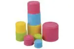 תשע כוסות צבעוניות בגדלים שונים שנכנסות אחת לתוך השנייה