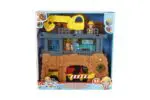 דמויות, שלטים, קונוסים, משאית עפר, מערבל בטון, מקומות חנייה במפלס התחתון לרכבים