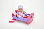 הבובה מגיעה עם מיטה לבובה, כרית ובקבוק