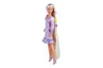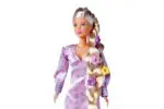 סטפי לבושה בשמלה פרחונית סגולה ושיערה ארוך עד הרגלים כך שניתן לשזור לה מגוון של תסרוקות שונות