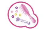 הערכה כוללת: מברשת, סיכה פרחונית סגולה, קליפסים מדליקים של פרחים