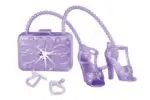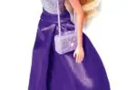 חלק עליון בצבע כסף מנצנץ וחצאית סגולה בוהקת