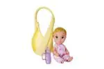 הבובה מגיעה עם מנשא מעוצב בצבע צהוב לתינוק