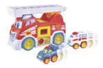 מכונית משטרה ואמבולנס כוללות במארז. ניתן לאחסנם בתוך הכבאית