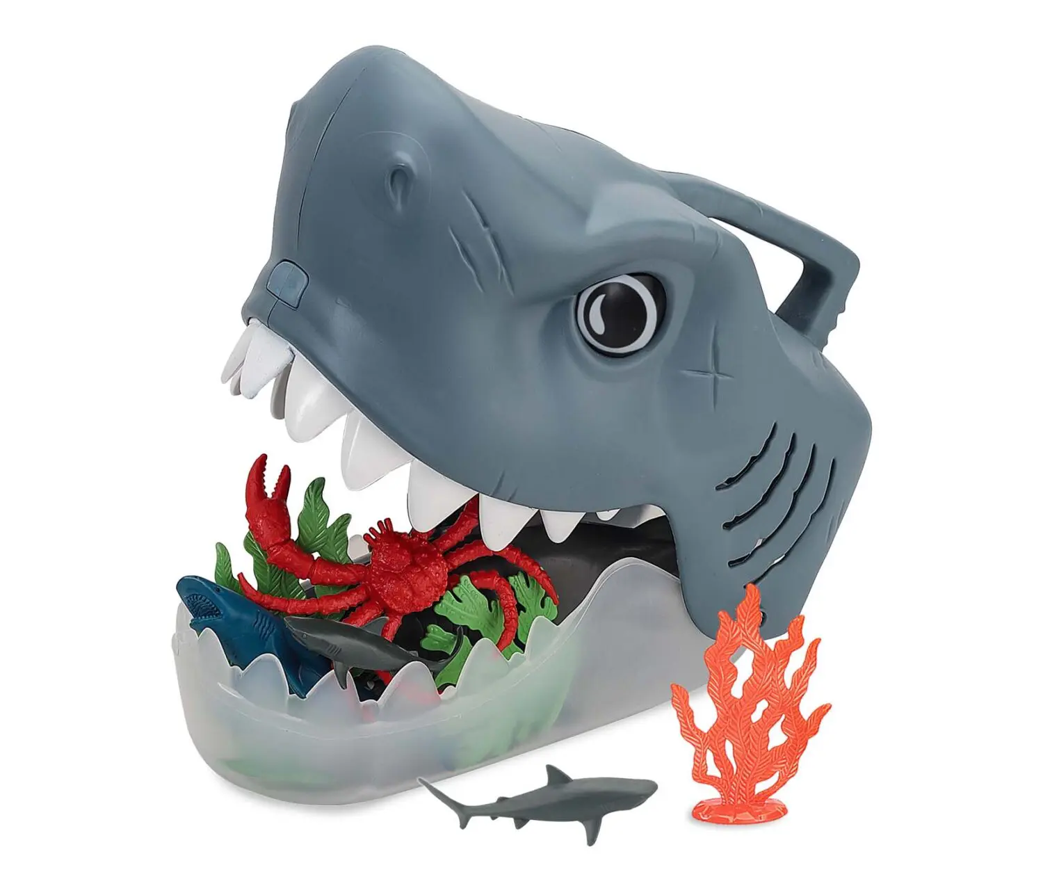 דלי בצורת כריש שמאפשר לאחסן בתוכו את 41 חיות הים השונות