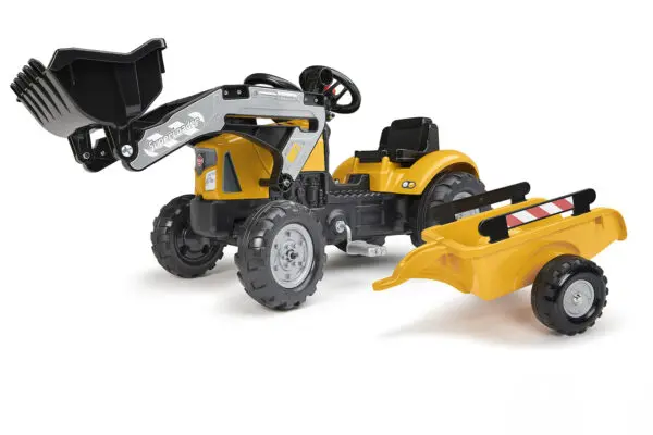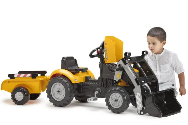 הטרקטור כולל כף קדמית ומחפרון ממושב הנהג וכן עגלת משא להענקת חוויה מושלמת לילד/ה