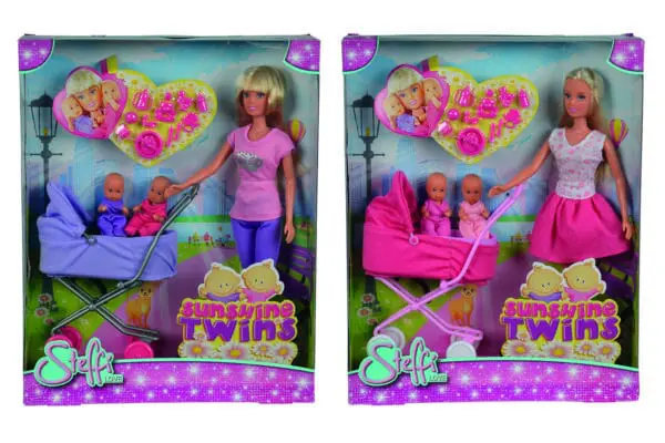 בובת סטפי אמא אופנתית עם עגלה חדשנית ותאומים