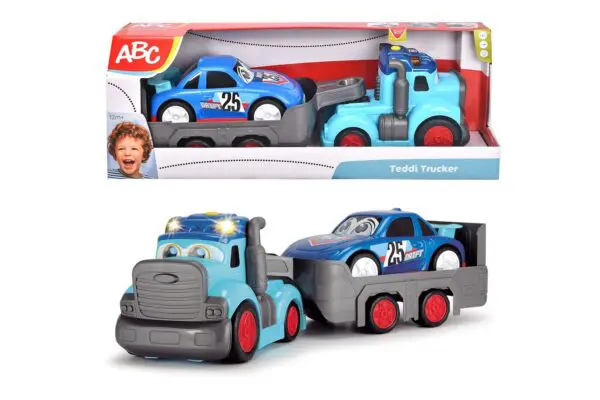 הצעצוע כולל אפקטים קולים ואורות, מכונית ונגרר נשלף שמאפשר לפעוט לשחק כגורר